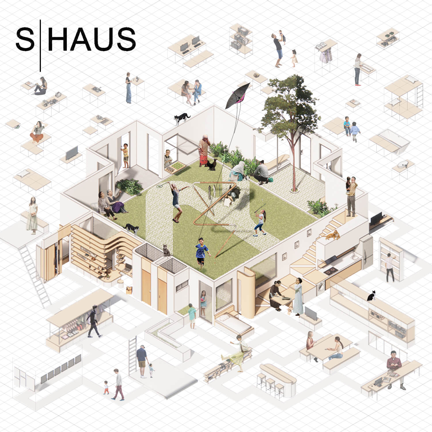 With the tag line “smaller house, larger sharing”, S Haus is a prototype for terrace housing in 2030, demonstrating how the value of sharing echoes coherently with societal values while influencing future housing design. The scheme hopes to demonstrate how living through sharing can address inherent issues such as land scarcity, housing affordability, customization based on user preference, influence of technology and sustainability.